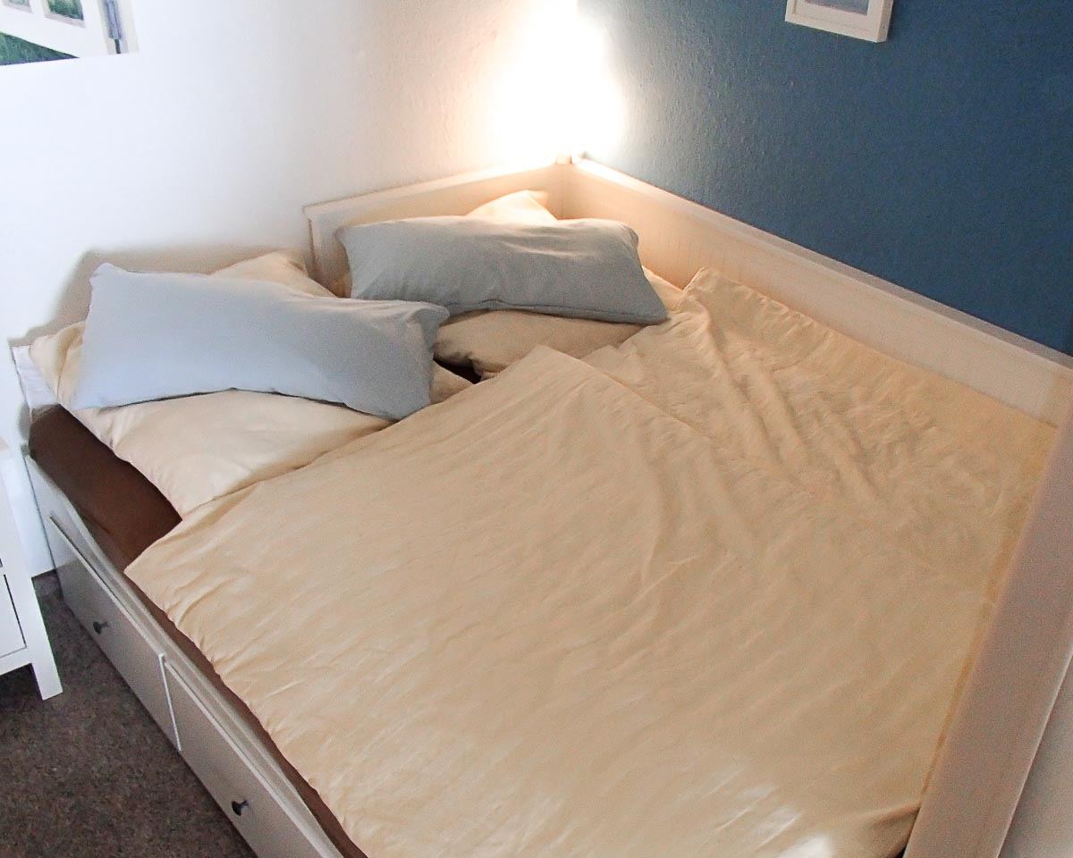 Für unsere kleinen Feriengäste befindet sich im Kinderzimmer ein Schreibtisch mit Malzeug, eine Unterbettbox mit diversen Spielen und eine eigene kleine Stereoanlage. Spielzeug für den Strand ist auch vorhanden.